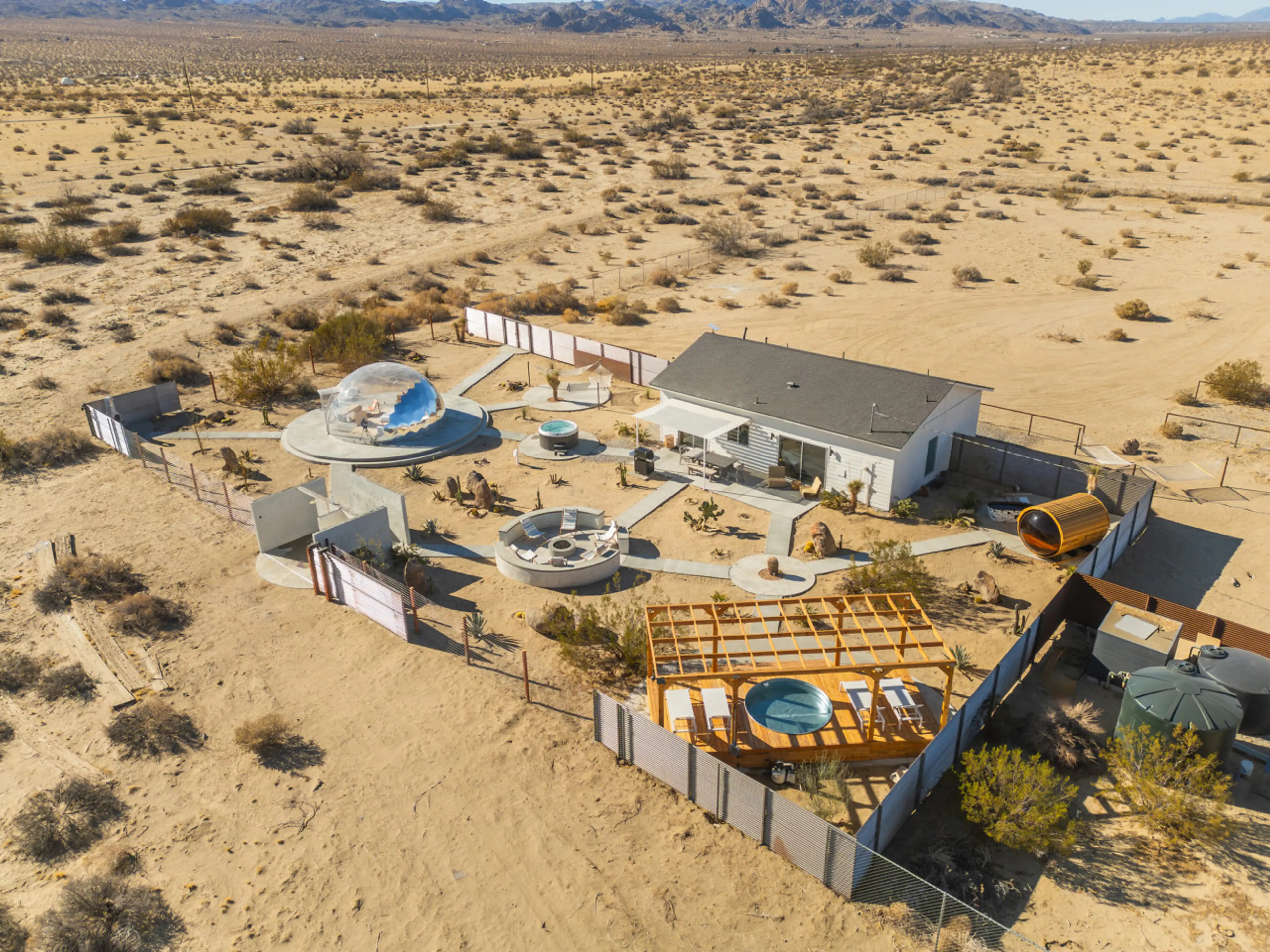 Welcome to Quail Wash Retreat (IG: @land_and_stay), your private 25-acre desert resort. This luxe boho sanctuary fuses curated design (Anthropologie/RH) with the raw spirit of Joshua Tree. Discover the ultimate escape featuring our exclusive Star-Gazing Dome, panoramic sauna, cold plunge, hot tub, a...